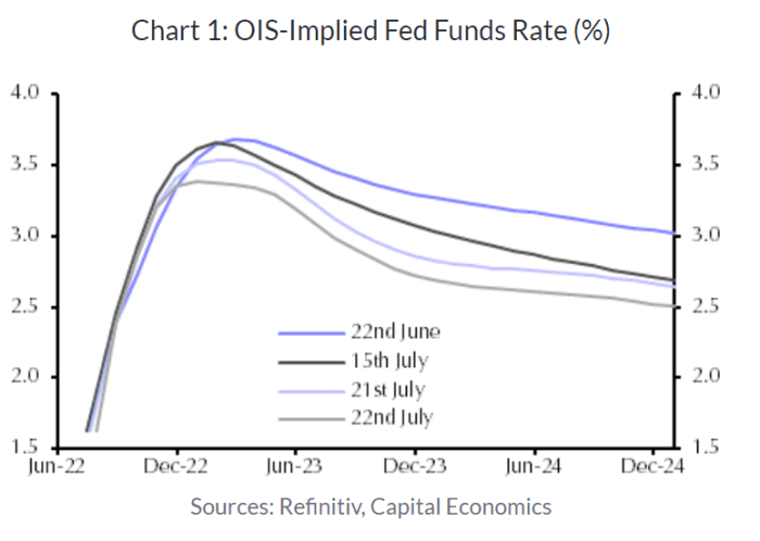 “I expect we will continue to see market volatility until investors have seen more convincing evidence that this period of Fed hawkishness is behind us, and I do not expect that to be the message” when central bankers conclude a two-day meeting on July 27, said Lauren Goodwin, economist and portfolio strategist at New York Life Investments, in a phone interview.